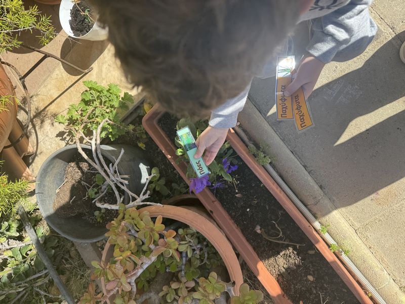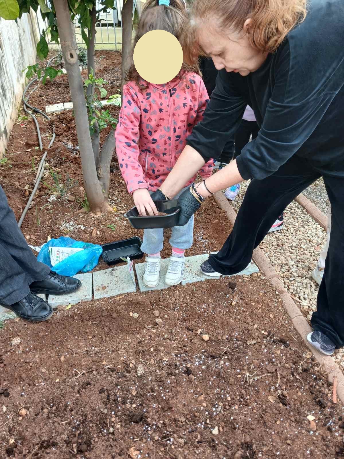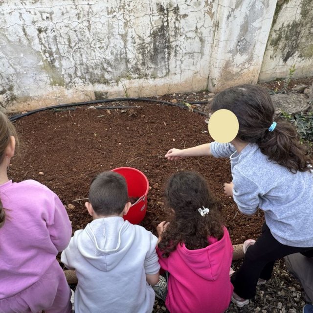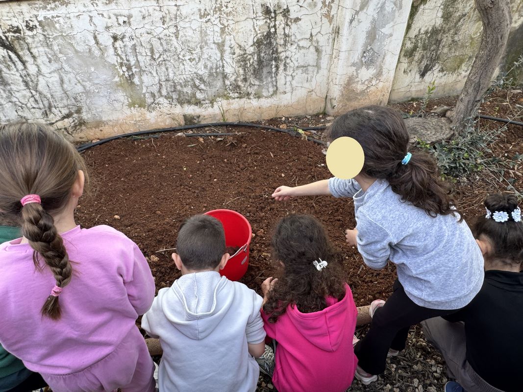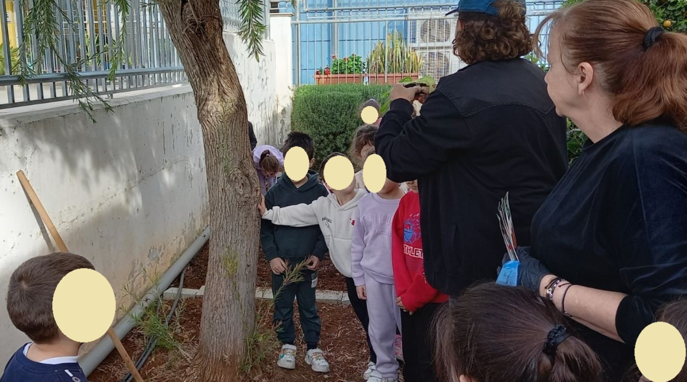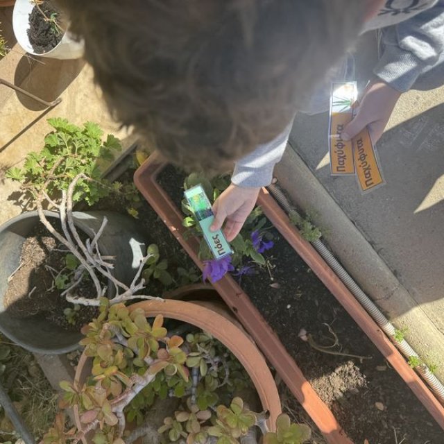 Τα παιδιά είχαν την ευκαιρία να εξερευνήσουν την αυλή του νηπιαγωγείου και εντόπισαν τα δέντρα, τα φυτά, τους θάμνους και τα λουλούδια που υπάρχουν σε αυτή. Στη συνέχεια υζήτησαν ποια από αυτά τους αρέσουν και ποιες αλλαγές θα ήθελαν να δουν και εντόπισαν το κατάλληλο σημείο για το λαχανόκηπο, σχεδιάζοντας τι θα φυτέψουν.