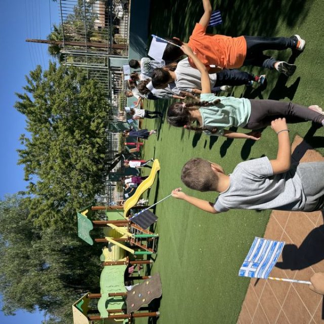 - Τα παιδιά συμμέτειχαν σε παρέλαση στον προαύλιο χώρο του σχολείου, στην έπαρση της σημαίας και παρουσίασαν ποιήματα και τραγούδια αφιερωμένα στην μέρα.