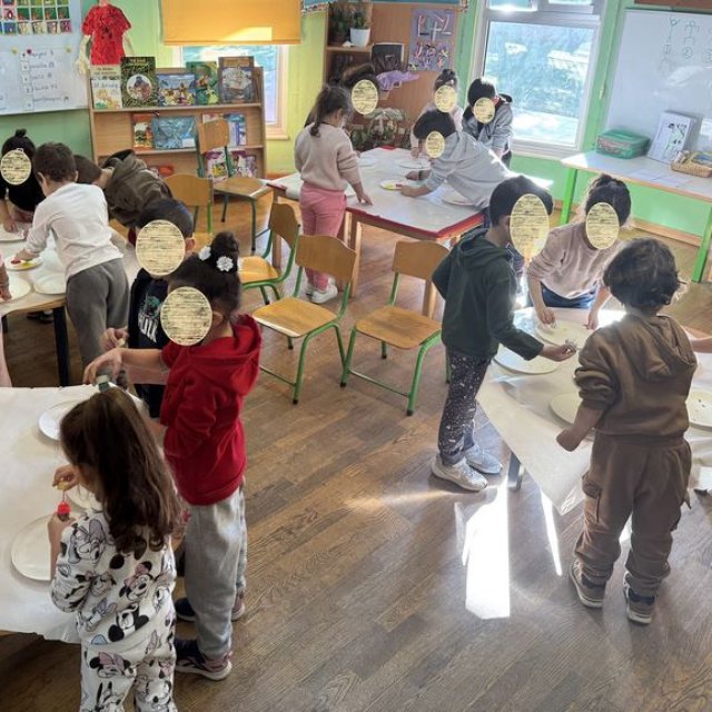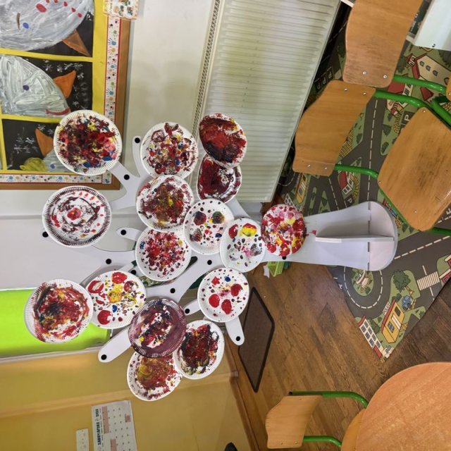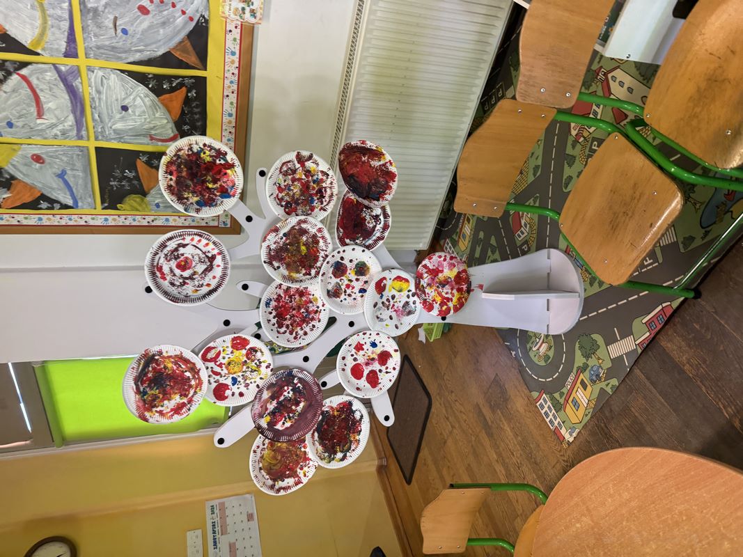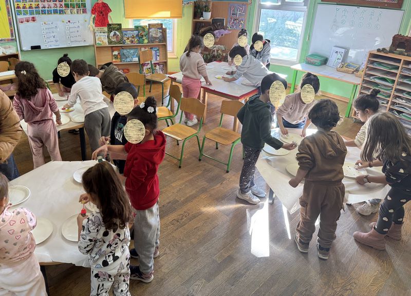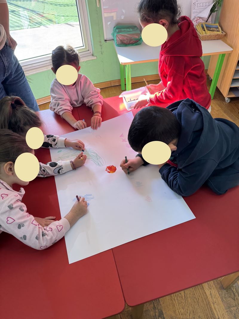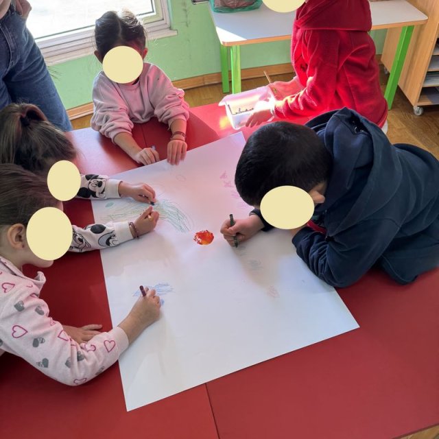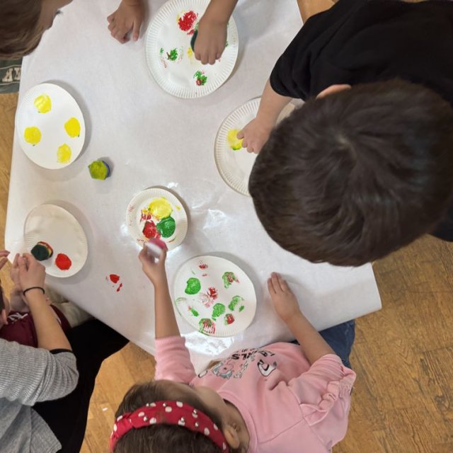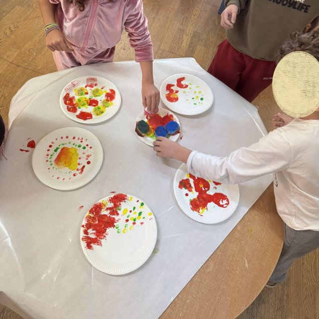 Τα παιδιά συμμετείχαν στο εικαστικό εργαστήρι με τίτλο «Μια τελεία» από τη Νικόλ Καραγιώργη, εμπνευσμένο από το παραμύθι «Η τελεία» του Peter H. Reynolds. Με την τεχνική του τυπώματος τα παιδιά δημιούργησαν τα δικά τους έργα τέχνης.