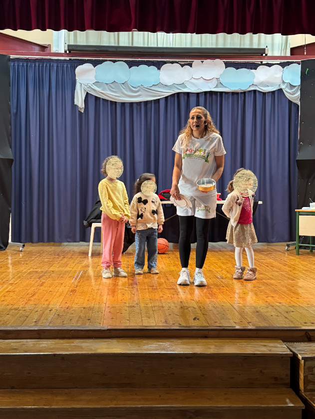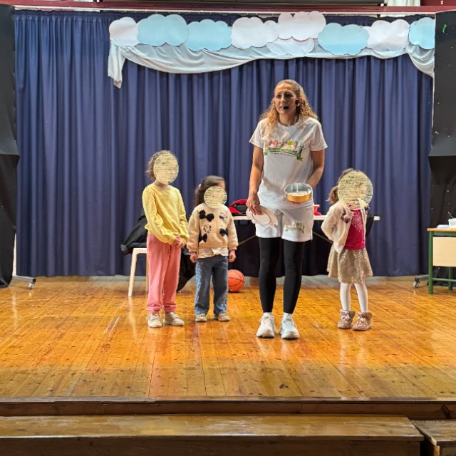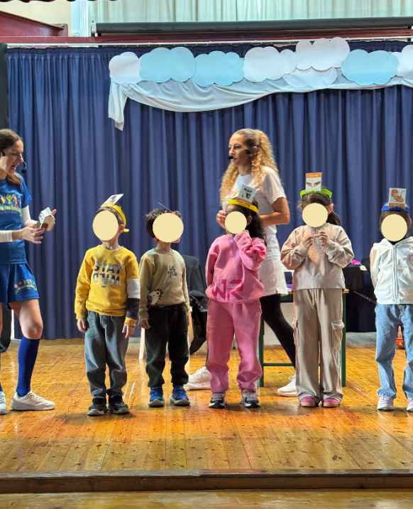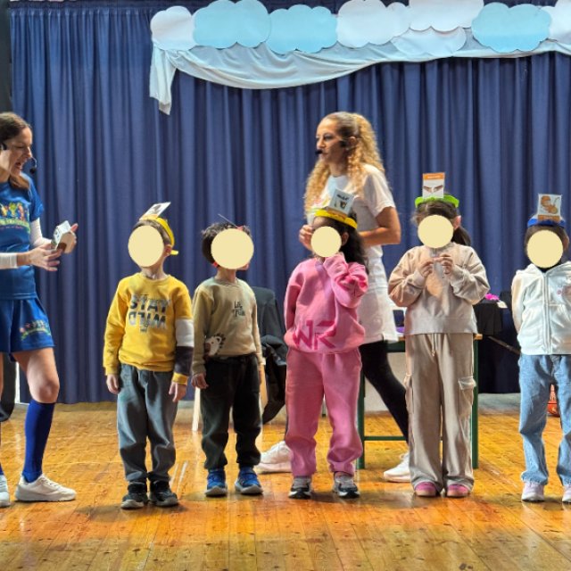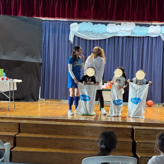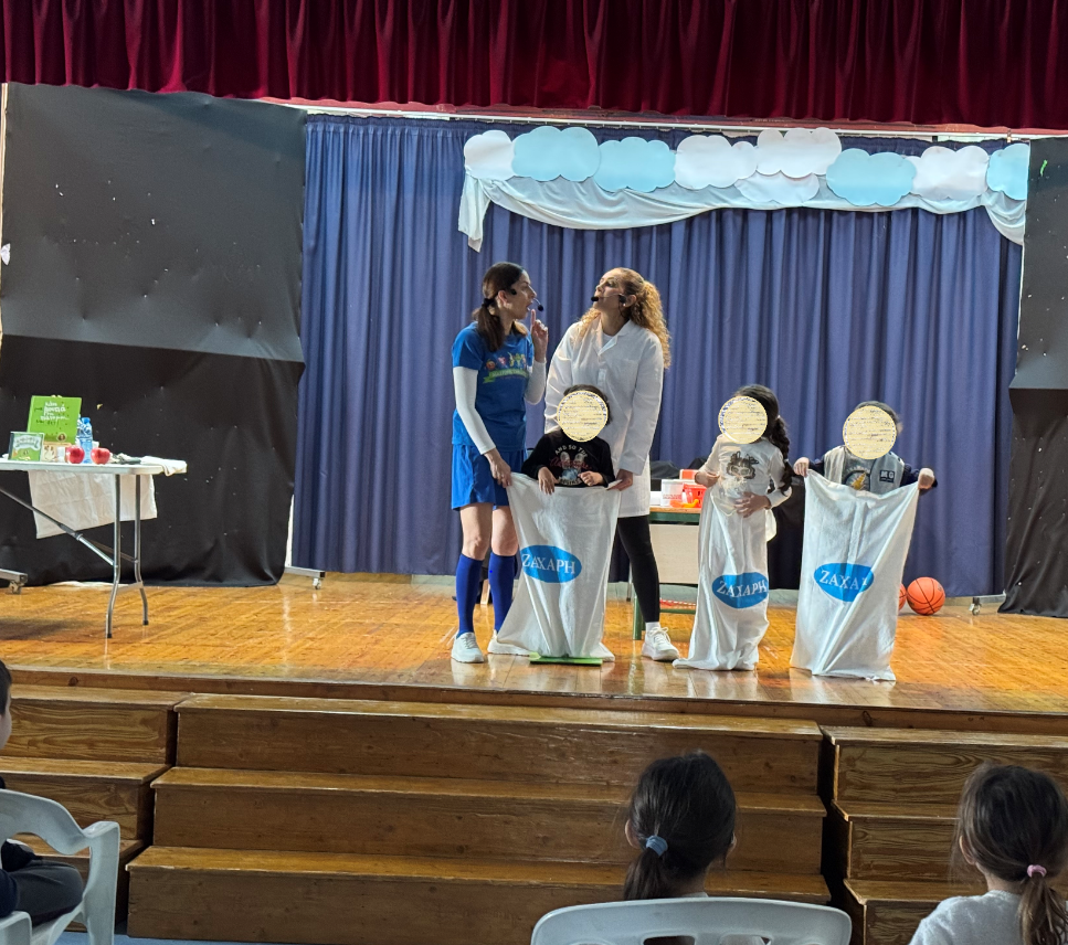 Τα παιδιά παρακολούθησαν μια διαδραστική θεατρική παράσταση σχετικά με την υγιεινή διατροφή και την σημαντικότητα της άσκησης στη ζωή μας.