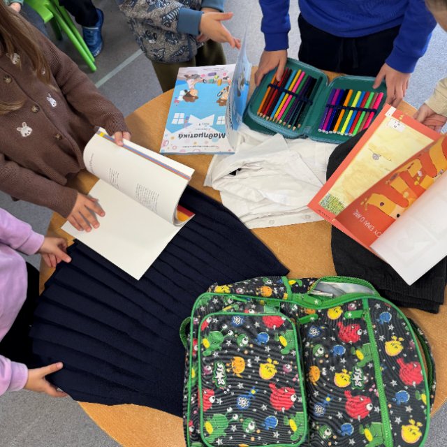 Παράλληλα τα παιδιά της Α΄τάξης του Δημοτικού Σχολείου επισκέφθηκαν τις τάξεις του νηπιαγωγείου για να παίξουν μαζί τους και να μοιραστούν τις εμπειρίες τους. Έφεραν τη σχολική τους τσάντα, εξήγησαν όλα όσα θα πρέπει να έρθουν αντιμέτωποι οι μαθητές τις πρώτες μέρες του σχολείου, κάνοντας να μοιάζει πιο οικείο και φιλικό.
