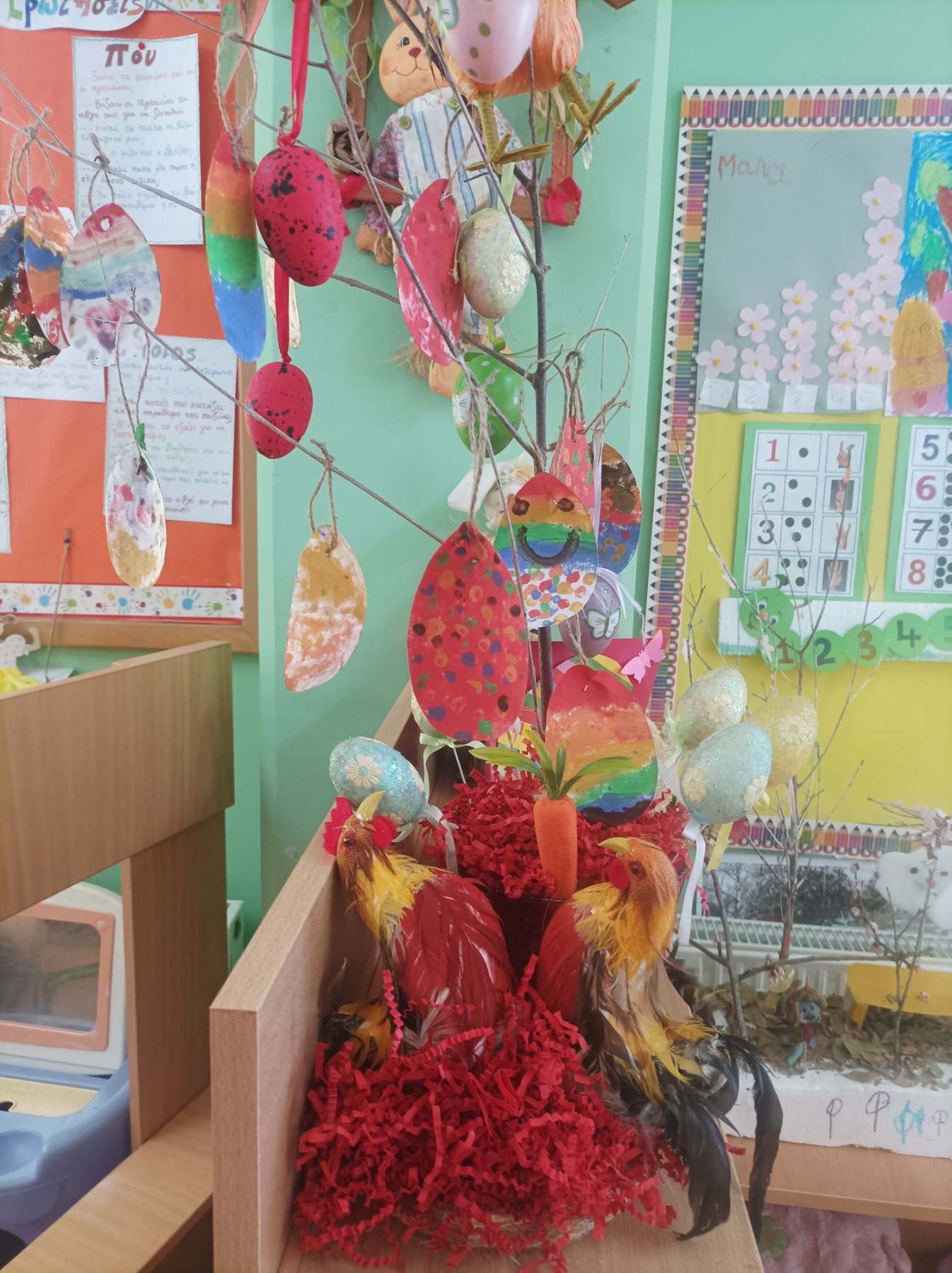 Οι τάξεις μας γέμισαν λαγουδάκια, πασχαλινές κοτούλες, καλαθάκια και άλλες πολλές χειροτεχνίες. Μιλήσαμε για την Μεγάλη Εβδομάδα και μάθαμε για τα έθιμα του τόπου μας βάφοντας αυγά και στολίζοντας τον επιτάφιο.